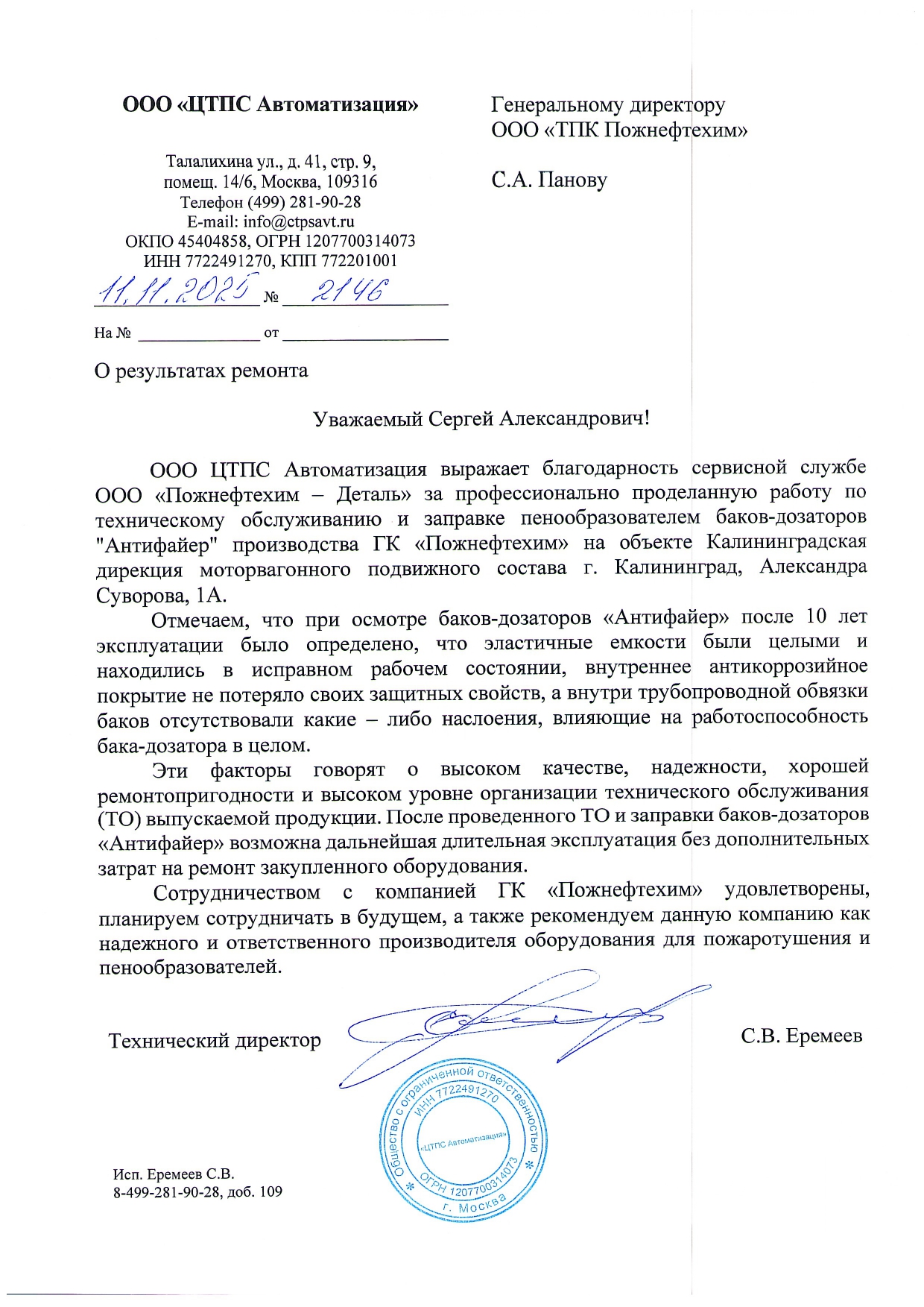 Мы признательны компаниям, которые прислали отзывы по итогам сотрудничества. ГК «Пожнефтехим», российский производитель оборудования и пенообразователей для пожаротушения промышленных объектов.